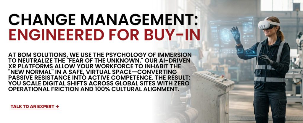 Change is inherently friction-heavy. Every new digital initiative you launch creates a wave of psychological resistance that threatens your ROI. By integrating VR and XR into your Change Management framework, you aren’t just “training” your people; you are engineering out the friction. You are giving your workforce the spatial, procedural, and emotional confidence to move into the future of your enterprise without looking back.